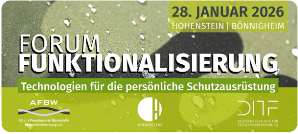 Hosted by AFBW (Alliance for Fiber-Based Materials Baden-Württemberg), Hohenstein, and the German Institutes of Textile and Fiber Research (DITF) Denkendorf,  this event will take place on January 28, 2026, from 9:00 AM to approximately 4:30 PM at Hohenstein.